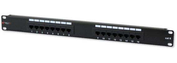 Panel wyposażony w 16 portów. Kategoria okablowania to 6.