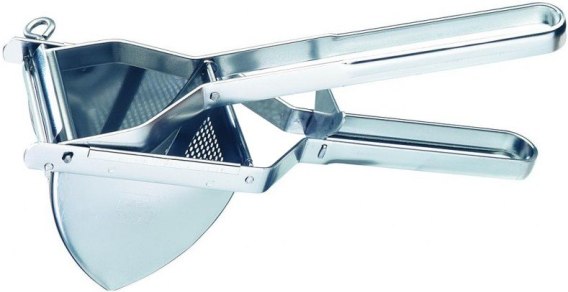 Wyciskacz do ziemniaków wykonany ze stali nierdzewnej.