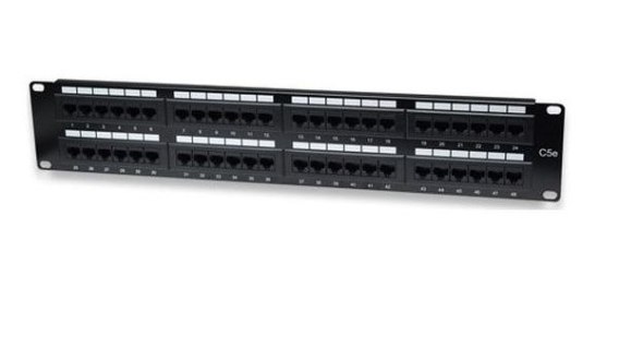 Panel wyposażony w 48 portów. Kategoria okablowania to 5e.