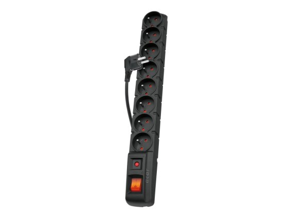 Listwa zasilająco-filtrująca zabezpiecza przed przepięciami do ośmiu urządzeń. Wyposażona w podświetlany wyłącznik, wygodny automatyczny bezpiecznik i szybkie warystory.