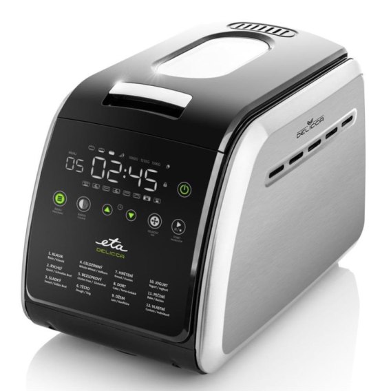 Informacje dodatkowe: 3 rozmiary chleba 1kg,1,25kg,1,5kg, 16 programów, Funkcja opóźnienia startu, Funkcja Keep Warm 60minut, Sterowanie dotykowe, Program Jogurt, Dżem, Okienko kontrolne
