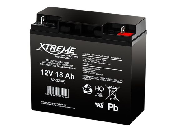 Akumulator żelowy o pojemności 18000 mAh oraz napięciu 12 V.
