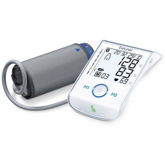 Optymalna kontrola ciśnienia krwi za pomocą aplikacji wartości zawsze i wszędzie pod kontrolą dzięki aplikacji beurer HealthManager Pro. Ciśnieniomierz naramienny BM 85 przekonuje nie tylko wyjątkowym designem, ale również wieloma udoskonaleniami technicznymi. Przyciski dotykowe, duży, biały wyświetlacz z podświetleniem oraz zintegrowany wskaźnik spoczynku zapewniają łatwy i bezpieczny pomiar ciśnienia krwi.