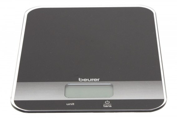 Waga kuchenna KS 19 Black firmy Beurer z funkcją doważania (tara) i precyzyjnym podziałem wagi w eleganckim kolorze czarnym pasuje do każdej kuchni.