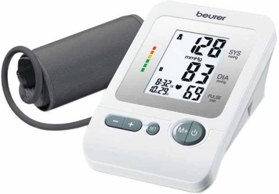 Ciśnieniomierz naramienny z funkcją czasu i daty, zapamiętujący 4 x 30 pomiarów, z wyświetlaczem LCD, funkcją rozpoznawania arytmii serca oraz ze wskaźnikiem niskiego poziomu baterii.