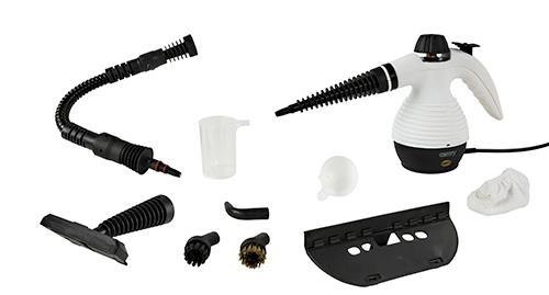 Informacje dodatkowe: Myjka parowa o ciśnieniu pary 3,5 bar, Moc 900-1050W, Moc maksymalna 1100W, Pojemność zbiorniczka 350ml, Aż dziesięć akcesoriów w komplecie:, Okrągła końcówka ze szczotka nylonową, Okrągła końcówka ze szczotka drucianą, Końcówka zagięta; Końcówka przedłużająca, Nakładka do okien; Przystawka do tkanin, Lejek; Miarka; Ściereczka; Dysza kolumnowa