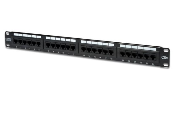 Panel krosowy. Szerokość (cale): 19. Wysokość: 1U. Liczba portów: 24. Rodzaj złącza: RJ-45. Rodzaj kabla: UTP.