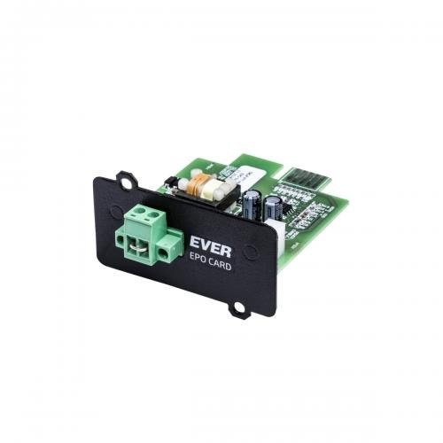 Karta EPO przeznaczona jest do zasilaczy UPS z serii SINLINE RT XL. Dzięki zastosowaniu karty użytkownik ma możliwości zdalnego, awaryjnego przerwania dostarczania energii do urządzeń odbiorczych z wyjścia zasilacza w ekstremalnych sytuacjach, jak np. pożar. Po zamontowaniu karty w specjalnym gnieździe znajdującym się na tylnym panelu zasilacza UPS, karta wykrywana jest automatycznie. Karta wykonana jest w konfiguracji NC (normalnie zamknięty).