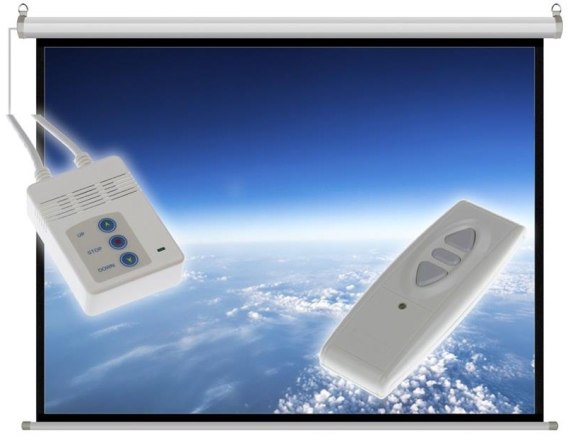 Ekran elektryczny o przekątnej 100 cali. Materiał wykonania: Matt White. Grubość materiału: 0. 36 mm. Proporcje obrazu: 4:3. Współczynnik odbicia światła: 1.0 Gain. Kąt odbicia światła: 160 stopni. Mocowanie do sufitu lub do ściany. Obudowa wykonana z metalu.