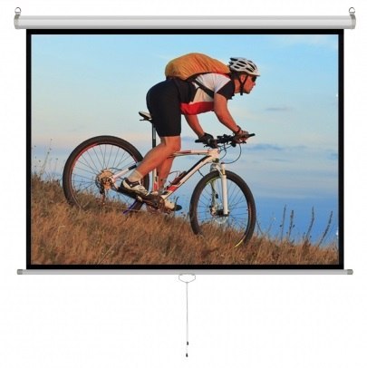 Ekran projekcyjny, półautomatyczny. Przekątna ekranu: 84-cal. Format obrazu: 4:3. Grubość materiału: 0.36 mm. Współczynnik odbicia światła: 1.0 gain. Materiał wykonania: matt white. Mocowanie do sufitu oraz ściany. Materiał obudowy: metal. Wysokość oraz szerokość powierzchni projekcyjnej: 127 x 170 cm.