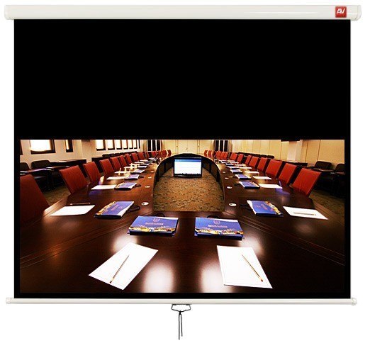 Ekran projekcyjny ścienny o wymiarach powierzchni projekcyjnej 190 x 119 cm w formacie 16:10. Powierzchnia projekcyjna Matt White. Blokada zabezpieczająca przed zwijaniem.