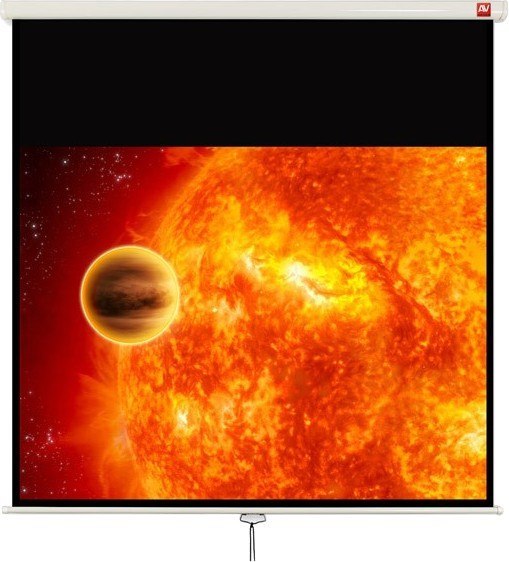 Ekran projekcyjny ścienny o wymiarach powierzchni projekcyjnej 195 x 146.5 cm w formacie 4:3. Powierzchnia projekcyjna Matt White. Blokada zabezpieczająca przed zwijaniem.