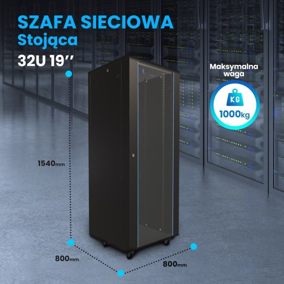 Extralink Szafa rack 32U 800x800 Czarna stojąca
