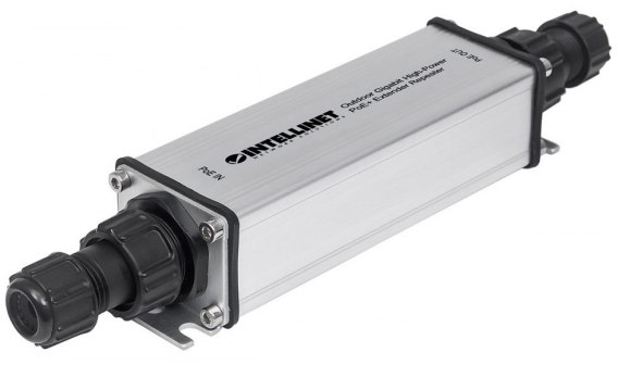 Wzmacniacz sygnału. Kompatybilny z adapterami i przełącznikami PoE (PSE) zgodnymi z IEEE 802.3at/af. Rozszerza istniejące połączenie PoE powyżej limitu 100 metrów.