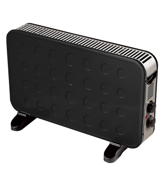 Wolnostojący grzejnik konwektorowy wyposażony w 2 stopnie regulacji mocy 1250 oraz 2000 W. Posiada termostat, zabezpieczenie przed przegrzaniem i uchwyty do przenoszenia.