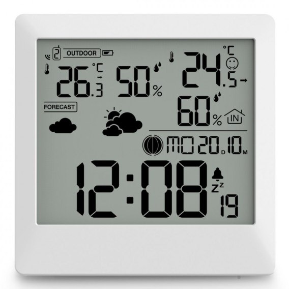 Dzięki wyświetlaniu prognozy w postaci czterech ikon, urządzenie sprawia, że sprawdzenie pogody jest wygodne i szybkie. Ikony reprezentują słoneczną pogodę, lekkie zachmurzenie, pochmurnie oraz deszcz, co pozwala na natychmiastowe rozpoznanie warunków atmosferycznych.