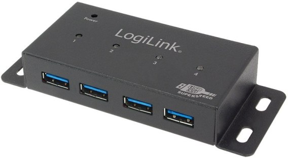 Hub aktywny, wyposażony w 4 porty USB 3.0. Prędkość transmisji danych: 5 Gb/s. Diody sygnalizacyjne. Hot Plug. Plug and Play. Zabezpieczenie nadprądowe. Materiał wykonania: Metal. Wyposażenie: Przewód USB 3.0, zasilacz.