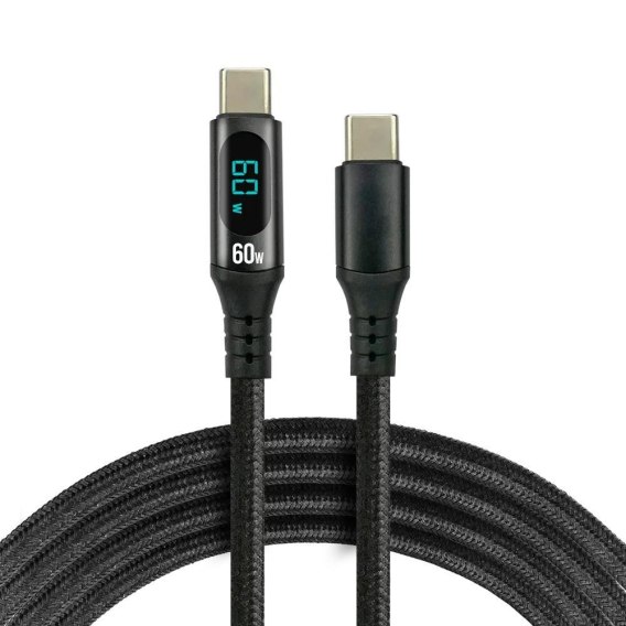 Kabel USB-C -> USB-C everActive CBB-3PDL 3m 60W wbudowany wyświetlacz czarny