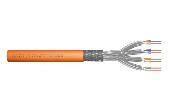 Kabel instalacyjny DIGITUS kat.7, S/FTP, Cca, AWG 23/1, LSOH, 1000m, pomarańczowy, szpula