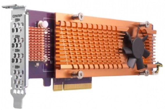 Złącze: 4 gniazda M.2 2280 PCIe (Gen3 x 5) NVMe SSD, Zapewnia dodatkową obsługę dysków M.2 SSD na serwerze Qnap NAS, Czujniki termiczne M.2 SSD umożliwiają monitorowanie temperatury M.2 SSD w czasie rzeczywistym, Wskaźniki LED do monitorowania stanu M.2 SSD