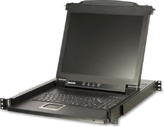 Konsola KVM. Posiada klawiaturę, touchpad oraz ekran LCD o przekątnej 17" i rozdzielczości 1280 x 1024 pikseli.