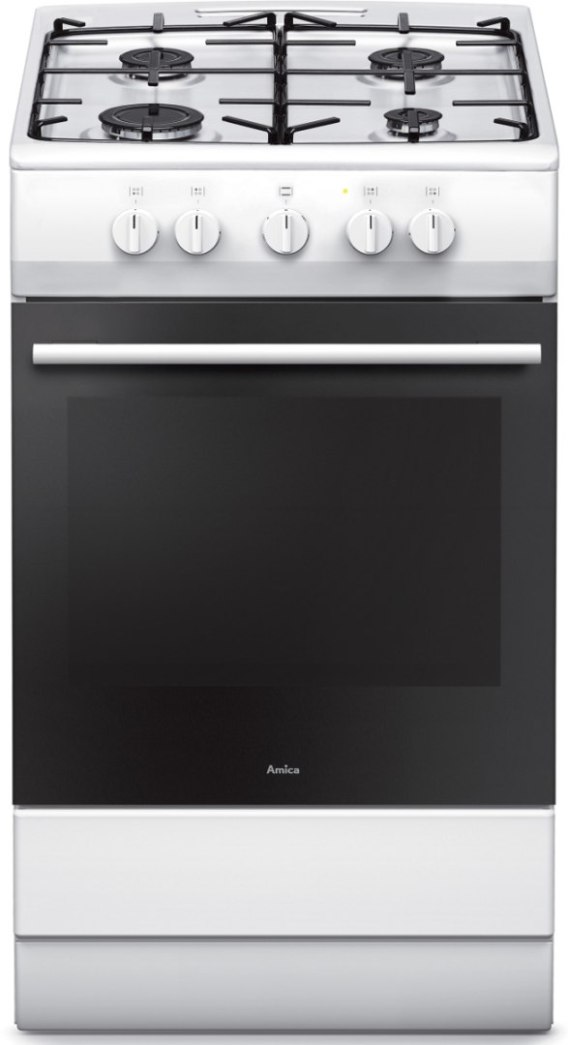 Kuchnia gazowa o szerokości 50 cm, pojemności piekarnika 70 l, z podwójnym rusztem, 4 palnikami gazowymi oraz z zabezpieczeniem przeciwwypływowym.