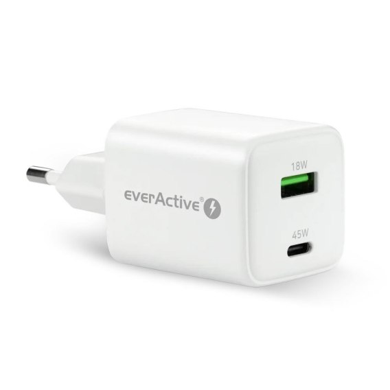 Ładowarka sieciowa everActive GaN SC-450Q 1x USB, 1x USB-C PD PPS QC4+ 45W