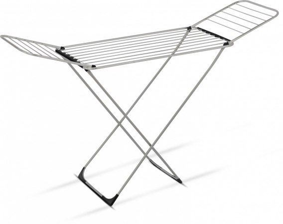 Składana suszarka do ubrań odpowiednia do wnętrz, balkonów, tarasów czy loggii. Suszarkę można łatwo złożyć lub rozłożyć w zależności od potrzeb. Posiada stabilną stalową konstrukcję nóg oraz aluminiową powierzchnię suszenia 18 m, co umożliwia wydajne suszenie prania. Niska waga suszarki pozwala na łatwą obsługę. Udźwig suszarki wynosi 15 kg.