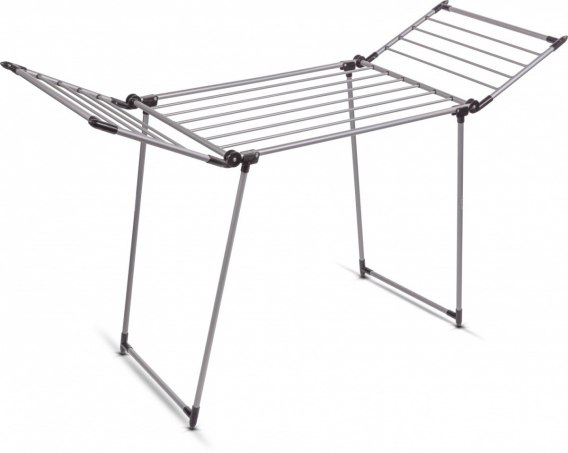 Składana suszarka do ubrań odpowiednia do wnętrz, balkonów, tarasów czy loggii. Suszarkę można łatwo złożyć lub rozłożyć w zależności od potrzeb. Posiada stabilną konstrukcję wykonaną ze stali lakierowanej oraz powierzchnię suszenia 15 m, co pozwala na sprawne suszenie prania. Zaletą są mocne druty, które zapobiegają zagniecaniu się prania. Udźwig suszarki wynosi 15 kg.