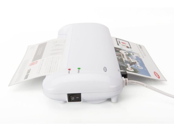 Informacje dodatkowe: Element grzewczy: (ceramiczna) płytka mikowa, Do laminowania o wielkości: DIN A4, DIN A5, DIN A6, wizytówki, ABS(system zapobiegający blokowaniu)/przycisk odblokowania w razie zacięcia, Pobór mocy: 260W