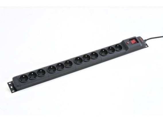 Listwa zasilająca wyposażona w metalowe mocowania do montażu w szafach przemysłowych rack. Listwa posiada 12 gniazd wyjściowych.