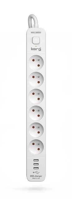 Listwa zasilająca KERG z wyłącznikiem-6 gniazd 3USBA 16A 1,5m
