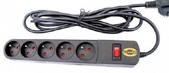 Listwa przeciwprzepięciowa wyposażona w 5 gniazd sieciowych oraz kabel o długości 3 m.
