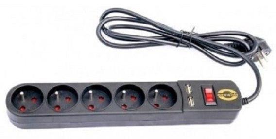 Listwa zasilająca wyposażona w 5 gniazd sieciowych oraz kabel o długości 3 m.