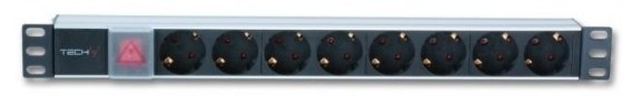Listwa zasilająca przeznaczona do szafy rack o wysokości 1U. Posiada 8 gniazd typu IEC60884 oraz wtyczkę kablową IEC60884. Napięcie znamionowe wynosi 250 V AC, a natężenie prądu 16 A. Kabel zasilający o długości 3 m.
