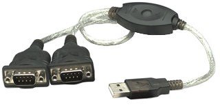 USB konwerter łączy dwa urządzenia szeregowe RS232 z portem USB 1.1 Posiada pozłacane styki i wytrzymałą konstrukcję. Wykorzystuje technologię Plug and Play. Szybkość transferu: do 115,2 kbps. Posiada kabel o długości 45 cm.