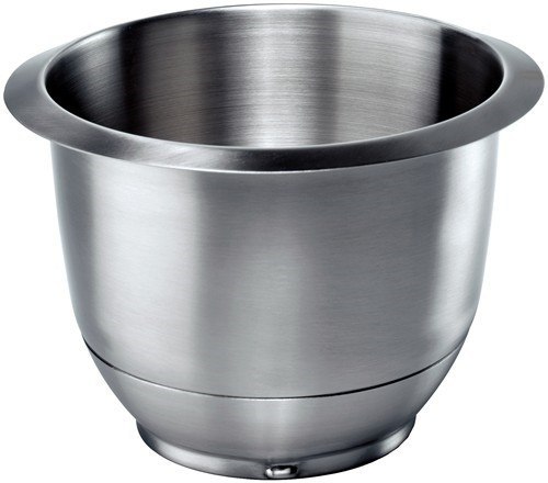 Misa ze stali nierdzewnej do robota kuchennego Bosch z serii MUM 5 o pojemności 3.9 l i wymiarach (wys. x śred.): 170 x 230 mm.