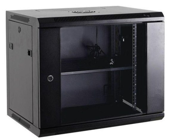 Szafa wisząca 19" o wysokości wewnętrznej 18 U. Maksymalna ładowność wynosi 100 kg.