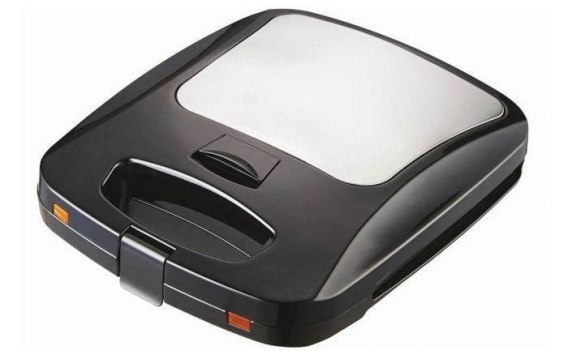 Opiekacz z funkcją grilla i gofrownicy. Moc urządzenia wynosi 1200 W. Wyposażony w antypoślizgowe nóżki oraz lampki kontrolne. W zestawie 3 wymienne płytki.