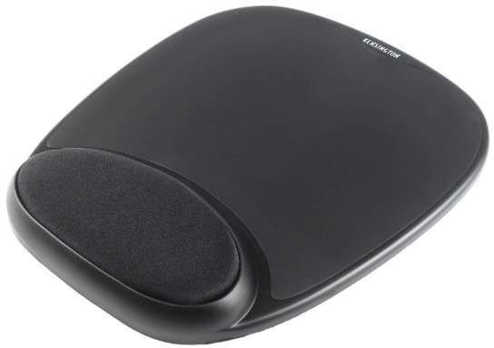 Podkładka pod mysz komputerową w kolorze czarnym. Podkładka z żelową podpórką pod nadgarstek. Wykonana z miłego i wytrzymałego materiału. Pozwala na pracę myszą kulkową lub optyczną.
