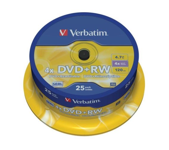 Płyty DVD+RW Verbatim 4x 4.7GB (Cake 25) MATT SILVER