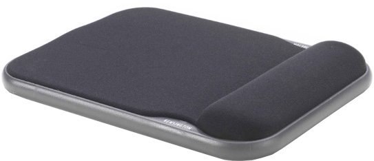 Podkładka pod mysz komputerową w kolorze czarnym. Podkładka z żelową podpórką pod nadgarstek. Wykonana z miłego i wytrzymałego materiału. Pozwala na pracę myszą kulkową lub optyczną.
