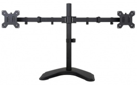 Uchwyt biurkowy do dwóch monitorów LCD/LED. Wielkość ekranu monitora 13 - 27 cali. Maksymalna waga jednego monitora 10 kg. Uchwyt wykonany z metalu lakierowanego proszkowo. Standard VESA 75 x 75 mm i 100 x 100 mm.