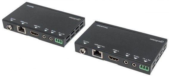Wzmacniacz sygnału. Wydłuża zasięg sygnału HDMI przy użyciu standardu HDBaseT na odległość do 70 m za pomocą jednego kabla sieciowego.