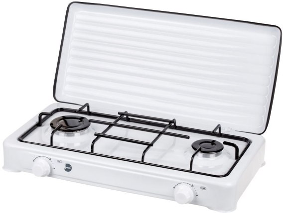 Płyta gazowa wolnostojąca, dwupalnikowa, z emaliowanym rusztem oraz emaliowaną obudową.