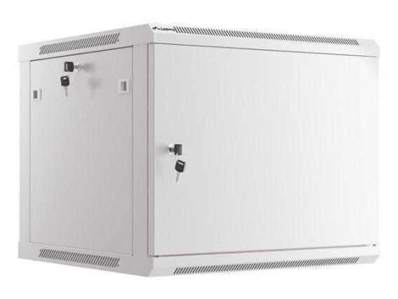 • SZAFA INSTALACYJNA RACK WISZĄCA 19" 9U 600X600 SZARA DRZWI METALOWE LANBERG (FLAT PACK)
