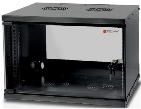 Szafa wisząca 19" o wysokości 6 U. Maksymalne obciążenie wynosi 50 kg.