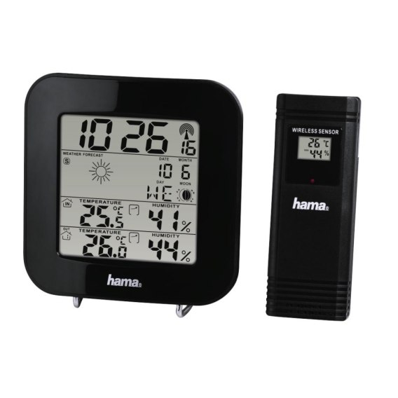 Stacja pogody umożliwiająca sprawdzanie ciśnienia atmosferycznego, temperatury zewnętrznej i wewnętrznej oraz wilgotności powietrza. Posiada czujnik bezprzewodowy.
