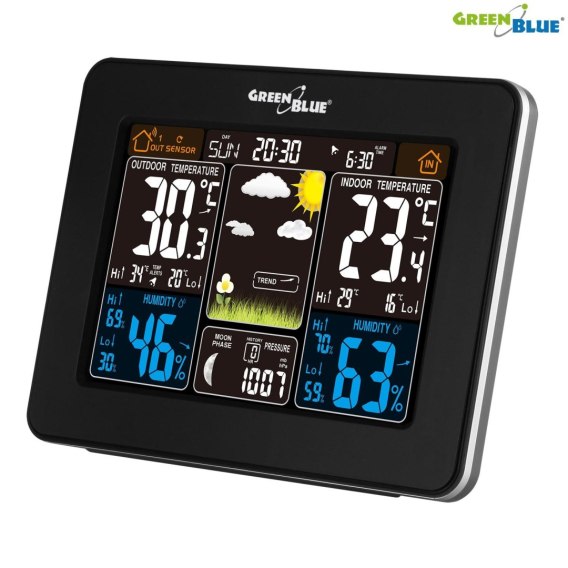 Stacja pogody bezprzewodowa GreenBlue GB523 DCF, ciśnienie, kolorowa