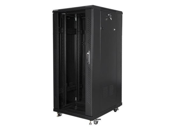 Informacje dodatkowe: Kolor: Czarny RAL9004, Panel podłogowy: 4 kółka z hamulcem + regulowane nóżki, Ładowność: Do 800 KG, Klasa szczelności: IP20, Panel wentylacyjny: 4 wentylatory 230V w górnej obudowie, Rodzaj drzwi: Przednie - Szyba hartowana, Tylnie - Stalowe, Zgodność ze standardami: ANSI/EIA RS-310D, IEC297-2, DIN41494; PART1 & PART7, ETSI, Materiał wykonania: Wysokiej jakości stal walcowana, malowana proszkowo, Grubość blachy: Profil montażowy - 2,00mm, Reszta - 1,2mm - 1,5mm, Otwory kablowe: Góra, Dół (regulowane), W zestawie: Akcesoria do mocowania, zamek drzwi przednich i tylnych, dwa zamki paneli bocznych, 20 śrub M6